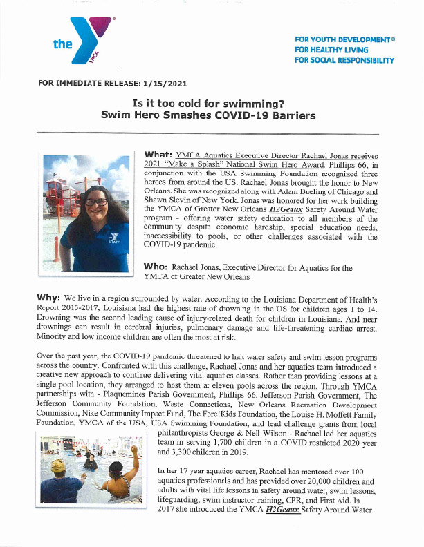 YMCA Executive Director of Aquatics named National Swim Hero!
